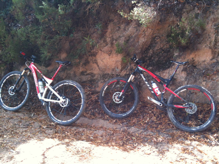 • XC/Marathon com um peso inferior a 12 kg - aqui começam as coisas a ficar complicadas! :) uma suspensão total com um nível de equipamento interessante e abaixo dos 12 kg torna a tarefa da escolha mais complexa ! ;)  ...e sendo assim as opções de uma All mountain ficam logo praticamente descartadas... Também o meu estilo é mais XC ! Prefiro um peso mais baixo que me ajuda nas subidas do que um curso maior de suspensões para as descidas - até porque eu (ainda) sou menino a descer ! :)